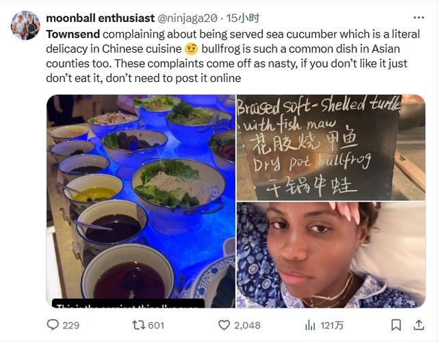 【浏览量目前超百万】博主:汤森德抱怨吃的菜,这可是中国菜里的美味佳肴。牛蛙在亚洲国家也是一道常见的菜。这些抱怨很恶心,如果你不喜欢就别吃了,没必要发到网上。